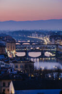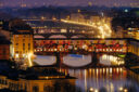The “old bridge” (Ponte Vecchio) spanning the Arno at its narrowest point. Viewing from the east.